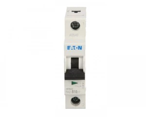 Jednobiegunowy wyłącznik nadprądowy Eaton FAZ B10/1 o prądzie znamionowym 10 A i charakterystyce B przeznaczony do ochrony obwodów jednofazowych w instalacjach przemysłowych i budynkach. Urządzenie służy do zabezpieczenia przed przeciążeniami i zwarciami zgodnie z normami IEC/EN.