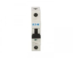 Wyłącznik nadprądowy 1-biegunowy FAZ B16/1 przeznaczony do ochrony obwodów przed przeciążeniem i zwarciem w instalacjach jednofazowych. Urządzenie typu B o prądzie znamionowym 16 A stosowane w rozdzielnicach budynków i obiektów przemysłowych.