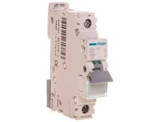 Wyłącznik nadprądowy jednobiegunowy Hager z serii NBN B32. Łatwy montaż na szynie. Wytrzymała konstrukcja obudowy nie uszkadza się przy montażu. Szeroki zakres stosowania dzieki możliwości pracy w temp od -25 do 60 °C. Duża wytrzymałość mechaniczna 20.000 i elektryczna 4.000 cykli. Zdecydowanie jeden z lepszych produktów w swojej cenie.