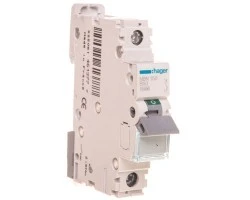 Wyłącznik nadprądowy jednobiegunowy Hager z serii NBN B50. Łatwy montaż na szynie. Wytrzymała konstrukcja obudowy nie uszkadza się przy montażu. Szeroki zakres stosowania dzieki możliwości pracy w temp od -25 do 60 °C. Duża wytrzymałość mechaniczna 20.000 i elektryczna 4.000 cykli. Zdecydowanie jeden z lepszych produktów w swojej cenie.