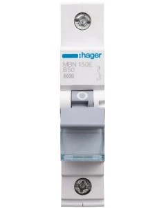 Wyłącznik nadprądowy jednobiegunowy Hager z serii MBN B50. Łatwy montaż na szynie. Wytrzymała konstrukcja obudowy nie uszkadza się przy montażu. Szeroki zakres stosowania dzieki możliwości pracy w temp od -25 do 60 °C. Duża wytrzymałość mechaniczna 20.000 i elektryczna 4.000 cykli. Zdecydowanie jeden z lepszych produktów w swojej cenie.