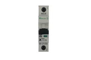 Modułowy wyłącznik nadprądowy to jeden z podstawowych i najczęściej stosowanych urządzeń automatyki zabezpieczeniowej. Wykorzystywany jest do ograniczania skutków zwarć i przeciążeń instalacji elektrycznej. Prąd przepływający przez obwód o zbyt dużej wartości w stosunku do wartości prądu znamionowego wyłącznika powoduje jego wyłączenie i przerwanie zasilanego obwodu. Wyłączenie zasilania ma na celu ochronę urządzeń i instalacji przed uszkodzeniem, ochronę osób przed porażeniem i ostatecznie przed wystąpieniem pożaru. Długotrwałe przeciążenie instalacji w znaczy sposób przyspiesza starzenie izolacji.Modułowy wyłącznik nadprądowy 1P C 10A CLS6 270350 wyprodukowany został przez firmę Eaton. Jest to aparat jednomodułowy, jednobiegunowy o prądzie znamionowym wynoszącym 10A i działający zgodnie z charakterystyką wyzwalania typu C. Aparaty o takiej charakterystyce najczęściej znajdują zastosowanie w obwodach w których zastosowano urządzenia elektroenergetyczne o dużych prądach rozruchowych (silniki, transformatory). Granica zadziałania wyzwalacza termobimetalowego dla tego typu wyłącznika zawiera się od 1,13 do 1,45 krotności prądu znamionowego wyłącznika. Natomiast zadziałanie wyzwalacza elektromagnetyczny odbywa się przy wystąpieniu prądu rzędu od 5 do 10 krotności prądu znamionowego wyłącznika.Wyłączniki oferowane przez firmę EATON posiadają bogaty osprzęt dodatkowy tj. styki pomocnicze, wyzwalacze, a także obudowy. Są one przystosowane do szybkiego montażu na szynę standardową TS35 mm. Zwarciowa zdolność wyłączeniowa tego wyłącznika określana jest na poziomie 6kA.