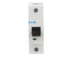 Jednobiegunowy wyłącznik nadprądowy AZ-C80 o znamionowym prądzie 80 A i charakterystyce wyzwalania C, przeznaczony do ochrony obwodów zasilających w instalacjach przemysłowych i budynkach. Stosowany jako zabezpieczenie linii i odbiorników w rozdzielnicach montowanych na szynie DIN.