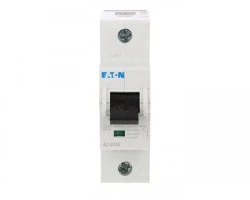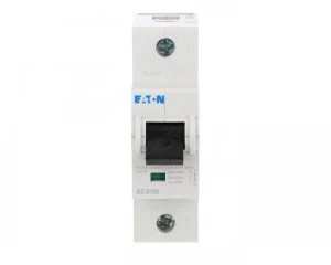 Jednobiegunowy wyłącznik nadprądowy AZ-D100 przeznaczony do ochrony obwodów zasilających o prądzie znamionowym 100 A; stosowany w rozdzielnicach przemysłowych i budynkowych do zabezpieczania obciążeń z wysokimi prądami rozruchowymi.