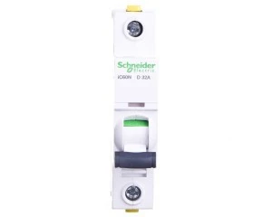 Wyłącznik nadprądowy iC60N-D32-1 D 32A 1-biegunowy ,o numerze A9F05132. Możliwość bezpośredniego podłączenia dwóch przewodów o różnych przekrojach. O ptyczny wskaźnik Visi-Trip wyzwolenia elektrycznego, biało-czerwony. Możliwość demontażu pojedynczego aparatu bez potrzeby zdejmowania szyny łączeniowej. Zdjemowanie z szyny DIN bez użycia narzędzi. Jego klasa ograniczenia 3 (zgodnie z normą EN/IEC60898-1) poprawia koszt ochrony obwodu odpływowego. Unikalny wskaźnik Visitrip skraca czas interwencji, pokazując uszkodzony obwód.