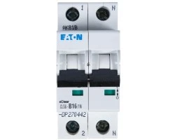 Wyłącznik nadprądowy z charakterystyką wyzwalania B został zaprojektowany przez firmę EATON ELECTRIC. Seria CLS6, na którą składa się aparat swoje zastosowanie znajduje w budownictwie użyteczności publicznej, mieszkaniowym oraz w przemyśle. Jego główną funkcją jest ochrona instalacji elektrycznej przed skutkami zwarć i napięć. Znamionowa zwarciowa zdolność łączeniowa w wyłączniku jest zgodna z EN 60898 i ma wartość 6 kA. Z kolei jego prąd znamionowy wynosi 16 A, a napięcie znamionowe jest równe 230 AC o częstotliwości od 50 Hz do 60 Hz. Aparat posiada 2 bieguny oraz system zacisków windowych górnych i dolnych umożliwiających stabilne podłączenie przewodów łączeniowych, których przekrój może być w zakresie od 1 mm? do 25 mm?. Wyłącznik mocuje się na standardowej szynie TS35, dzięki czemu montaż jest szybki i prosty dla instalatora. Warto jednak zaznaczyć, że względu na stopień ochrony IP20 powinien być instalowany wyłącznie wewnątrz budynków.Aparat można dodatkowo wyposażyć w wyzwalacz wzrostowy lub wyzwalacza podnapięciowy oraz w styki pomocnicze.