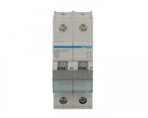 Wyłącznik nadprądowy dwubiegunowy Hager z serii MBN B 32. Łatwy montaż na szynie. Wytrzymała konstrukcja obudowy nie uszkadza się przy montażu. Szeroki zakres stosowania dzieki możliwości pracy w temp od -25 do 60 °C. Duża wytrzymałość mechaniczna 20.000 i elektryczna 4.000 cykli. Zdecydowanie jeden z lepszych produktów w swojej cenie.