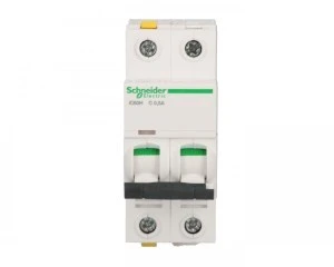 Wyłącznik nadprądowy iC60H-C0,5-2 C 0,5A 2-biegunowy ,o numerze A9F07270. Możliwość bezpośredniego podłączenia dwóch przewodów o różnych przekrojach. Optyczny wskaźnik Visi-Trip wyzwolenia elektrycznego, biało-czerwony. Możliwość demontażu pojedynczego aparatu bez potrzeby zdejmowania szyny łączeniowej. Zdjemowan ie z szyny DIN bez użycia narzędzi. Jego klasa ograniczenia 3 (zgodnie z normą EN/IEC60898-1) poprawia koszt ochrony obwodu odpływowego. Unikalny wskaźnik Visitrip skraca czas interwencji, pokazując uszkodzony obwód.
