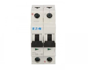 Dwubiegunowy wyłącznik nadprądowy FAZ C20/2-DC przeznaczony do pracy w obwodach prądu stałego (DC), stosowany do ochrony przed przeciążeniem i zwarciem w instalacjach zasilania stałonapięciowego.