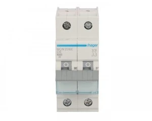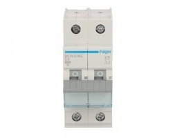 Wyłącznik nadprądowy dwubiegunowy Hager z serii MCN C 6. Łatwy montaż na szynie. Wytrzymała konstrukcja obudowy nie uszkadza się przy montażu. Szeroki zakres stosowania dzieki możliwości pracy w temp od -25 do 60 °C. Duża wytrzymałość mechaniczna 20.000 i elektryczna 4.000 cykli. Zdecydowanie jeden z lepszych produktów w swojej cenie.