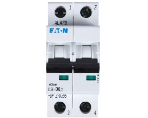 Wyłącznik nadprądowy pochodzi z nowej serii CLS6 renomowanej marki EATON ELECTRIC. Jest on przeznaczony do zastosowania w budynkach mieszkalnych, użyteczności publicznej oraz w przemyśle. Jego główną funkcją jest zabezpieczanie sieci energii elektrycznej przed skutkami przepięć i zwarć. Wyłącznik nadprądowy z charakterystyką wyzwalania D ma 2 bieguny, a jego znamionowa zwarciowa zdolność łączeniowa zgodna z normą EN 60898 ma wartość 6 kA. Aparat został wyposażony także w system zacisków windowych górnych i dolnych, które umożliwiają stabilne mocowanie przewodów łączeniowych o przekroju od 1 mm? do 25 mm?. Co więcej, jego innowacyjna konstrukcja pozwala na szybki i bezproblemowy montaż na standardowej szynie TS35, a po wbudowaniu ma on zaledwie 71 mm głębokości. Wyłącznik został wykonany w 3 klasie ograniczenia energii i posiada stopień ochrony IP20, dlatego powinien być instalowany wewnątrz budynków, w miejscach niezagrożonych długotrwałą wilgocią. Prąd znamionowy w urządzeniu wynosi 6 A, a napięcie znamionowe jest równe 400 V AC o częstotliwości od 50 Hz do 60 Hz. Opcjonalnie, wyłącznik można wyposażyć w wyzwalacz wzrostowy Z-ASA i podnapięciowy Z-USA, a także w styki pomocnicze mocowane po jego lewej stronie.