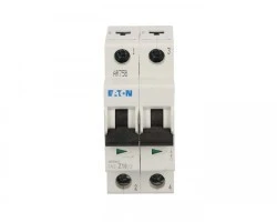Wyłącznik nadprądowy FAZ Z16/2 firmy Eaton to dwubiegunowy aparat ochronny o prądzie znamionowym 16 A i charakterystyce wyzwalania Z, przeznaczony do zabezpieczania obwodów niskiego napięcia przed przeciążeniami i zwarciami. Urządzenie jest przeznaczone do montażu na szynie DIN w rozdzielnicach przemysłowych i budynkowych.