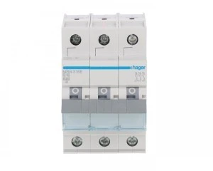 Wyłącznik nadprądowy trójbiegunowy Hager z serii MBN B16. Łatwy montaż na szynie. Wytrzymała konstrukcja obudowy nie uszkadza się przy montażu. Szeroki zakres stosowania dzieki możliwości pracy w temp od -25 do 60 °C. Duża wytrzymałość mechaniczna 20.000 i elektryczna 4.000 cykli. Zdecydowanie jeden z lepszych produktów w swojej cenie.