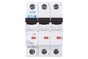 Wyłączniki nadprądowy typu CLS6 firmy Eaton należą do grupy aparatów modułowych niskiego napięcia. Ich zadaniem jest ochrona instalacji elektrycznej przed skutkami zwarć i przeciążeń. Podczas zaistnienia jednego z tych dwóch zdarzeń wyłączniki powinny przerwać obwód. Odłączenie zasilania ma na celu między innymi ochronę urządzeń i instalacji przed uszkodzeniami, ochronę osób przed porażeniem a także zapobieganie wystąpienia ewentualnego pożaru. Prąd o wartości większej od dopuszczalnej przepływający przez dłuższy czas w znaczy sposób przyczynia się do przyspieszenia starzenia się izolacji przewodów instalacji elektrycznej.Wyłącznik nadprądowy 3P B 32A CLS6 o numerze katalogowym 270411 został wytworzony przez firmę Eaton, która znana jest w branży z produktów o bardzo wysokiej jakości. Jest elementem trójfazowym, trójmodułowym o prądzie znamionowym 32A i charakterystyce wyzwalania typu B. Aparaty o takiej charakterystyce najczęściej znajdują zastosowanie w obwodach oświetleniowych, gniazd wtykowych lub w obwodach zasilających urządzenia o charakterze rezystancyjnym. Granica zadziałania wyzwalacza termobimetalowego dla tego typu wyłącznika zawiera się od 1,13 do 1,45 krotności prądu znamionowego wyłącznika. Natomiast zadziałanie wyzwalacza elektromagnetycznego odbywa się przy wystąpieniu prądu rzędu od 3 do 5 krotności prądu znamionowego wyłącznika.Wyłączniki mogą być doposażone w dodatkowe elementy takie jak np. styki pomocnicze, wyzwalacze wzrostowe napięciowe lub wyzwalacze podnapięciowe.Zwarciowa zdolność wyłączeniowa tego wyłącznika określana jest na poziomie 6kA.Są one przystosowane do szybkiego montażu na szynę standardową TS35 mm.