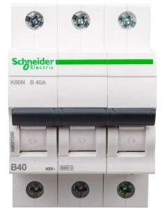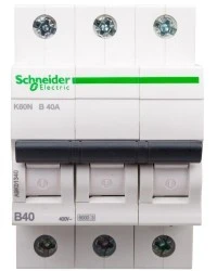 Wyłącznik nadprądowy jest 3-biegunowy. Charakterystyka krzywej wyzwalania została oznaczona literą B. Napięcie znamionowe 1 oraz 2 sięga 230 V, natomiast prąd znamionowy sięga 40 A. Częstotliwość przy jakiej pracuje dochodzi do 50/60 Hz. Wyłącznik można zamontować na szynie DIN. Posiada 6 modułów. Sterowanie odbywa się przy pomocy dźwigni. Stopień zanieczyszczenia został oznaczony na 2, a kategoria przepięć na II. IP20, to stopień ochrony jakim się charakteryzuje. Świadczy on o odporności na ciała obce o średnicy 12,5 mm. Aparat nie będzie jednak chroniony przed wodą czy wilgocią. Kategoria A została nadana zgodnie z IEC 60898-1. Temperatura otoczenia dla pracy tego wyłącznika waha się między -25°C a 70 °C. Produkt waży 0,36 kg, jest w kolorze białym. Kategoria A została nadana zgodnie z EN 60898-1. Wykonawcą tego wyłącznika jest SCHNEIDER ELECTRIC - producent z wieloletnim stażem na światowym rynku rozdziału energii elektrycznej. Pochodzi on z nowoczesnej linii ACTI 9. Jest ona w pełni bezpieczna, intuicyjna. Najlepiej sprawdzi się w budownictwie mieszkaniowym i przemysłowym.