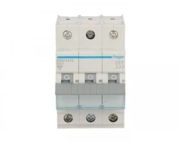 Wyłącznik nadprądowy trójbiegunowy Hager z serii MBN B40. Łatwy montaż na szynie. Wytrzymała konstrukcja obudowy nie uszkadza się przy montażu. Szeroki zakres stosowania dzieki możliwości pracy w temp od -25 do 60 °C. Duża wytrzymałość mechaniczna 20.000 i elektryczna 4.000 cykli. Zdecydowanie jeden z lepszych produktów w swojej cenie.