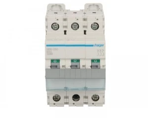 Wyłącznik nadprądowy trójbiegunowy Hager z serii NBN B50. Łatwy montaż na szynie. Wytrzymała konstrukcja obudowy nie uszkadza się przy montażu. Szeroki zakres stosowania dzieki możliwości pracy w temp od -25 do 60 °C. Duża wytrzymałość mechaniczna 20.000 i elektryczna 4.000 cykli. Zdecydowanie jeden z lepszych produktów w swojej cenie.