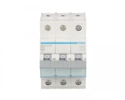 Wyłącznik nadprądowy trójbiegunowy Hager z serii MBN B63. Łatwy montaż na szynie. Wytrzymała konstrukcja obudowy nie uszkadza się przy montażu. Szeroki zakres stosowania dzieki możliwości pracy w temp od -25 do 60 °C. Duża wytrzymałość mechaniczna 20.000 i elektryczna 4.000 cykli. Zdecydowanie jeden z lepszych produktów w swojej cenie.