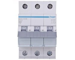 Wyłącznik nadprądowy trójbiegunowy Hager z serii MCN C0,5. Łatwy montaż na szynie. Wytrzymała konstrukcja obudowy nie uszkadza się przy montażu. Szeroki zakres stosowania dzieki możliwości pracy w temp od -25 do 60 °C. Duża wytrzymałość mechaniczna 20.000 i elektryczna 4.000 cykli. Zdecydowanie jeden z lepszych produktów w swojej cenie.