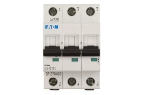 Wyłączniki nadprądowy typu CLS6 firmy Eaton należą do grupy aparatów automatyki zabezpieczeniowej niskiego napięcia. Ich zadaniem jest ochrona instalacji elektrycznej przed skutkami zwarć i przeciążeń. Podczas zaistnienia jednego z tych dwóch zdarzeń wyłączniki powinny przerwać obwód. Odłączenie zasilania ma na celu między innymi ochronę urządzeń i instalacji przed uszkodzeniami, ochronę osób przed porażeniem a także zapobieganie wystąpienia ewentualnego pożaru. Prąd o wartości większej od dopuszczalnej przepływający przez dłuższy czas w znaczy sposób przyczynia się do przyspieszenia starzenia się izolacji przewodów instalacji elektrycznej.Wyłącznik nadprądowy 3P C 10A CLS6 o numerze katalogowym 270418 został wytworzony przez firmę Eaton, która znana jest w branży z produktów o bardzo wysokiej jakości. Jest elementem trójfazowym, trójmodułowym o prądzie znamionowym 10A i charakterystyce wyzwalania typu C. Aparaty o takiej charakterystyce najczęściej znajdują zastosowanie w obwodach w których zastosowano urządzenia elektroenergetyczne o dużych prądach rozruchowych takich jak silniki, transformatory czy zespoły oświetleniowe. Granica zadziałania wyzwalacza termobimetalowego dla tego typu wyłącznika zawiera się od 1,13 do 1,45 krotności prądu znamionowego wyłącznika. Natomiast zadziałanie wyzwalacza elektromagnetycznego odbywa się przy wystąpieniu prądu rzędu od 5 do 10 krotności prądu znamionowego wyłącznika.Wyłączniki mogą być doposażone w dodatkowe elementy takie jak np. styki pomocnicze, wyzwalacze wzrostowe napięciowe lub wyzwalacze podnapięciowe.Zwarciowa zdolność wyłączeniowa tego wyłącznika określana jest na poziomie 6kA.Są one przystosowane do szybkiego montażu na szynę standardową TS35 mm.