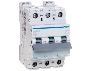 Wyłącznik nadprądowy trójbiegunowy Hager z serii NBN C13. Łatwy montaż na szynie. Wytrzymała konstrukcja obudowy nie uszkadza się przy montażu. Szeroki zakres stosowania dzięki możliwości pracy w temp od -25 do 60 °C. Duża wytrzymałość mechaniczna 20.000 i elektryczna 4.000 cykli. Zdecydowanie jeden z lepszych produktów w swojej cenie.