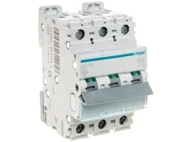 Wyłącznik nadprądowy trójbiegunowy Hager z serii NBN C32. Łatwy montaż na szynie. Wytrzymała konstrukcja obudowy nie uszkadza się przy montażu. Szeroki zakres stosowania dzięki możliwości pracy w temp od -25 do 60 °C. Duża wytrzymałość mechaniczna 20.000 i elektryczna 4.000 cykli. Zdecydowanie jeden z lepszych produktów w swojej cenie.