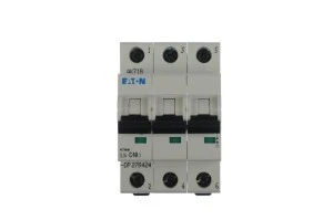 Podstawowymi i jednymi z najczęściej stosowanych urządzeń automatyki zabezpieczeniowej są modułowe wyłączniki nadprądowe. Wykorzystywane są do ograniczania skutków zwarć i przeciążeń instalacji elektrycznych. Prąd przepływający przez obwód o zbyt dużej wartości w stosunku do wartości prądu znamionowego wyłącznika powoduje jego wyłączenie i przerwanie zasilanego obwodu. Wyłączenie zasilania ma na celu ochronę urządzeń i instalacji przed uszkodzeniem, ochronę osób przed porażeniem i ostatecznie przed wystąpieniem pożaru. Długotrwałe przeciążenie instalacji w znaczy sposób przyspiesza starzenie izolacji.Modułowy wyłącznik nadprądowy 3P C 40A CLS6 270424 wyprodukowany został przez firmę Eaton. Jest to aparat trójbiegunowy o prądzie znamionowym wynoszącym 40A i działający zgodnie z charakterystyką wyzwalania typu C. Aparaty o takiej charakterystyce najczęściej znajdują zastosowanie w obwodach w których zastosowano urządzenia elektroenergetyczne o dużych prądach rozruchowych (silniki, transformatory). Granica zadziałania wyzwalacza termobimetalowego dla tego typu wyłącznika zawiera się od 1,13 do 1,45 krotności prądu znamionowego wyłącznika. Natomiast zadziałanie wyzwalacza elektromagnetycznego odbywa się przy wystąpieniu prądu rzędu od 5 do 10 krotności prądu znamionowego wyłącznika.Wyłączniki oferowane przez firmę EATON posiadają bogaty osprzęt dodatkowy tj. styki pomocnicze, wyzwalacze, a także obudowy. Są one przystosowane do szybkiego montażu na szynę standardową TS35 mm. Zwarciowa zdolność wyłączeniowa tego wyłącznika określana jest na poziomie 6kA.