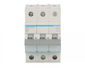 Wyłącznik nadprądowy trójbiegunowy Hager z serii MCN C40. Łatwy montaż na szynie. Wytrzymała konstrukcja obudowy nie uszkadza się przy montażu. Szeroki zakres stosowania dzieki możliwości pracy w temp od -25 do 60 °C. Duża wytrzymałość mechaniczna 20.000 i elektryczna 4.000 cykli. Zdecydowanie jeden z lepszych produktów w swojej cenie.