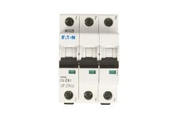 Podstawowymi i jednymi z najczęściej stosowanych urządzeń automatyki zabezpieczeniowej są wyłączniki nadprądowe. Wykorzystywane są do ograniczania skutków zwarć i przeciążeń instalacji elektrycznych. Prąd przepływający przez obwód o zbyt dużej wartości w stosunku do wartości prądu znamionowego wyłącznika powoduje jego wyłączenie i przerwanie zasilanego obwodu. Wyłączenie zasilania ma na celu ochronę urządzeń i instalacji przed uszkodzeniem, ochronę osób przed porażeniem i ostatecznie przed wystąpieniem pożaru. Długotrwałe przeciążenie instalacji w znaczy sposób przyspiesza starzenie izolacji.Modułowy wyłącznik nadprądowy 3P C 4A CLS6 270416 wyprodukowany został przez firmę Eaton. Jest to aparat trójfazowy, trójbiegunowy o prądzie znamionowym wynoszącym 4A i działający zgodnie z charakterystyką wyzwalania typu C. Aparaty o takiej charakterystyce najczęściej znajdują zastosowanie w obwodach w których zastosowano urządzenia elektroenergetyczne o dużych prądach rozruchowych (silniki, transformatory). Granica zadziałania wyzwalacza termobimetalowego dla tego typu wyłącznika zawiera się od 1,13 do 1,45 krotności prądu znamionowego wyłącznika. Natomiast zadziałanie wyzwalacza elektromagnetycznego odbywa się przy wystąpieniu prądu rzędu od 5 do 10 krotności prądu znamionowego wyłącznika.Wyłączniki oferowane przez firmę EATON posiadają bogaty osprzęt dodatkowy tj. styki pomocnicze, wyzwalacze, a także obudowy. Są one przystosowane do szybkiego montażu na szynę standardową TS35 mm. Zwarciowa zdolność wyłączeniowa tego wyłącznika określana jest na poziomie 6kA.