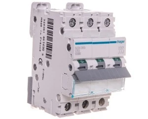Wyłącznik nadprądowy trójbiegunowy Hager z serii NBN C63. Łatwy montaż na szynie. Wytrzymała konstrukcja obudowy nie uszkadza się przy montażu. Szeroki zakres stosowania dzięki możliwości pracy w temp od -25 do 60 °C. Duża wytrzymałość mechaniczna 20.000 i elektryczna 4.000 cykli. Zdecydowanie jeden z lepszych produktów w swojej cenie.