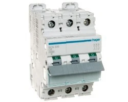Wyłącznik nadprądowy trójbiegunowy Hager z serii NBN C6. Łatwy montaż na szynie. Wytrzymała konstrukcja obudowy nie uszkadza się przy montażu. Szeroki zakres stosowania dzięki możliwości pracy w temp od -25 do 60 °C. Duża wytrzymałość mechaniczna 20.000 i elektryczna 4.000 cykli. Zdecydowanie jeden z lepszych produktów w swojej cenie.