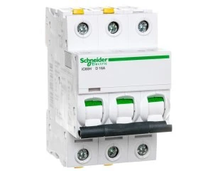 Wyłącznik nadprądowy iC60H-D16-3 D 16A 3-biegunowy ,o numerze A9F08316. Możliwość bezpośredniego podłączenia dwóch przewodów o różnych przekrojach. O ptyczny wskaźnik Visi-Trip wyzwolenia elektrycznego, biało-czerwony. Możliwość demontażu pojedynczego aparatu bez potrzeby zdejmowania szyny łączeniowej. Zdjemowanie z szyny DIN bez użycia narzędzi. Jego klasa ograniczenia 3 (zgodnie z normą EN/IEC60898-1) poprawia koszt ochrony obwodu odpływowego. Unikalny wskaźnik Visitrip skraca czas interwencji, pokazując uszkodzony obwód.