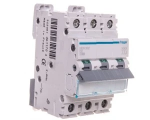 Wyłącznik nadprądowy trójbiegunowy Hager z serii NDN D 2. Łatwy montaż na szynie. Wytrzymała konstrukcja obudowy nie uszkadza się przy montażu. Szeroki zakres stosowania dzięki możliwości pracy w temp od -25 do 60 °C. Duża wytrzymałość mechaniczna 20.000 i elektryczna 4.000 cykli. Zdecydowanie jeden z lepszych produktów w swojej cenie.