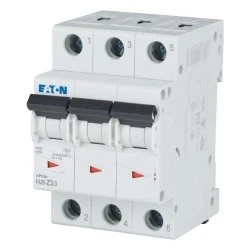 Wyłącznik nadprądowy FAZ6 jest urządzeniem ochronnym wyposażonym w wyzwalacz termiczny i elektromagnetyczny, który jest dostępny w wersjach 1-, 2-, 3-, 4-, 1+N i 3+N biegunowych. FAZ6 jest dostępny z prądami znamionowymi od 0,5 A do 63 A. Zdolność łączeniowa wynosi 10 kA zgodnie z normą IEC/EN 60947-2 i 6 kA zgodnie z normą IEC/EN 60898-1. Informacje na temat bezpiecznego podłączenia zacisków i 3-stopniowa szyna DIN ułatwiają montaż wyłącznika.