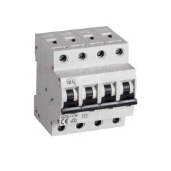 Wyłącznik z zabezpieczeniem nadmiarowo-prądowym: służy od ochrony przewodów przed przeciążeniami i zwarciami w instalacjach i urządzeniach, zgodność z normami PN-EN 60898-1; napięcie znamionowe 230V AC; prąd znamionowy 16A; częstotliwość znamionowa 50Hz; temperatura pracy: 5°C do 40°C; zakres stosowanych przewodów: 1-25 mm2; charakterystyka wyzwalania B; klasa ograniczania energii: 3; liczba modułów: 4; prąd znamionowy zwarciowy 6000A; stopień ochrony IP20; liczba biegunów: 4.