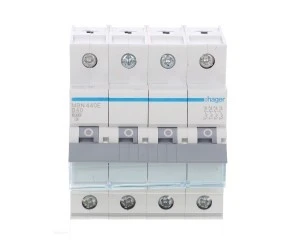 Wyłącznik nadprądowy czterobiegunowy Hager z serii MBN B40. Łatwy montaż na szynie. Wytrzymała konstrukcja obudowy nie uszkadza się przy montażu. Szeroki zakres stosowania dzieki możliwości pracy w temp od -25 do 60 °C. Duża wytrzymałość mechaniczna 20.000 i elektryczna 4.000 cykli. Zdecydowanie jeden z lepszych produktów w swojej cenie.