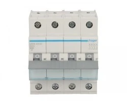 Wyłącznik nadprądowy czterobiegunowy Hager z serii MBN B63. Łatwy montaż na szynie. Wytrzymała konstrukcja obudowy nie uszkadza się przy montażu. Szeroki zakres stosowania dzieki możliwości pracy w temp od -25 do 60 °C. Duża wytrzymałość mechaniczna 20.000 i elektryczna 4.000 cykli. Zdecydowanie jeden z lepszych produktów w swojej cenie.