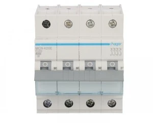 Wyłącznik nadprądowy czterobiegunowy Hager z serii MCN C20. Łatwy montaż na szynie. Wytrzymała konstrukcja obudowy nie uszkadza się przy montażu. Szeroki zakres stosowania dzieki możliwości pracy w temp od -25 do 60 °C. Duża wytrzymałość mechaniczna 20.000 i elektryczna 4.000 cykli. Zdecydowanie jeden z lepszych produktów w swojej cenie.