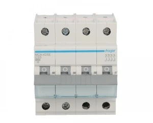 Wyłącznik nadprądowy czterobiegunowy Hager z serii MCN C25. Łatwy montaż na szynie. Wytrzymała konstrukcja obudowy nie uszkadza się przy montażu. Szeroki zakres stosowania dzieki możliwości pracy w temp od -25 do 60 °C. Duża wytrzymałość mechaniczna 20.000 i elektryczna 4.000 cykli. Zdecydowanie jeden z lepszych produktów w swojej cenie.
