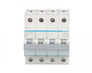 Wyłącznik nadprądowy czterobiegunowy Hager z serii MCN C32. Łatwy montaż na szynie. Wytrzymała konstrukcja obudowy nie uszkadza się przy montażu. Szeroki zakres stosowania dzieki możliwości pracy w temp od -25 do 60 °C. Duża wytrzymałość mechaniczna 20.000 i elektryczna 4.000 cykli. Zdecydowanie jeden z lepszych produktów w swojej cenie.