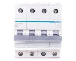 Wyłącznik nadprądowy czterobiegunowy Hager z serii MCN C63. Łatwy montaż na szynie. Wytrzymała konstrukcja obudowy nie uszkadza się przy montażu. Szeroki zakres stosowania dzieki możliwości pracy w temp od -25 do 60 °C. Duża wytrzymałość mechaniczna 20.000 i elektryczna 4.000 cykli. Zdecydowanie jeden z lepszych produktów w swojej cenie.