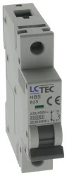 Prezentowany produkt to wyłącznik nadprądowy serii HBS marki LC TEC Plus. Posiada on zastosowanie dla ochrony przed skutkami zwarć i przeciążeń instalacji elektrycznej. Przepływ prądu o wartości wyższej niż wartość prądu znamionowego powoduje jego wyłączenie. Chroni to osoby przed porażeniem a instalację elektryczną przed zniszczeniem. Ponadto wyłączniki te posiadają znamionową zwarciową zdolność łączeniową o wartości 10kA. Oznacza to wyższą wytrzymałość styków, zdolność gaszenia łuku itp. w czasie zwarć niż u wyłączników nadprądowych 6kA.