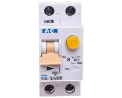 Wyłącznik różnicowo-nadprądowy dwubiegunowy Eaton z serii PKNM. Łatwy montaż na szynie. Wytrzymała konstrukcja obudowy nie uszkadza się przy montażu. Duża wytrzymałość mechaniczna i elektryczna. Specyfikacja: C 13A 230V 0,01A TYP AC. Zdecydowanie jeden z lepszych produktów w swojej cenie.