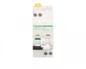 Wyłącznik kombinowany iDPNNVigi-C25-30-A C 25A 1N-biegunowy 30 mA typ A ,o numerze A9D32625. Dwuczłonowa dźwignia informuje, który z członów wyłączni ka wyzwolił. Optyczny wskaźnik Visi-Trip wyzwolenia elektrycznego, biało-czerwony oraz wskaźnik Visi-Safe -zielony wskaźnik potwierdzający otwarcie styków wyłącznika . Możliwość sprawdzania poprawności działania przyciskiem kontrolnym "T" jedynie raz do roku, przez pierwsze 7 lat użytkowania.