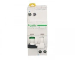 Wyłącznik kombinowany iDPNNVigi-C25-30-AC C 25A 1N-biegunowy 30 mA typ AC ,o numerze A9D31625. Dwuczłonowa dźwignia informuje, który z członów wyłącz nika wyzwolił. Optyczny wskaźnik Visi-Trip wyzwolenia elektrycznego, biało-czerwony oraz wskaźnik Visi-Safe -zielony wskaźnik potwierdzający otwarcie styków wyłączni ka. Możliwość sprawdzania poprawności działania przyciskiem kontrolnym "T" jedynie raz do roku, przez pierwsze 7 lat użytkowania.