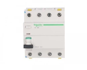 Wyłącznik różnicowoprądowy iID-63-4-100-AC 63A 4-biegunowy 100mA typ AC ,o numerze A9Z12463 Podwójne zaciski - możliwość bezpośredniego podłączenia dwóch przewodów o różnych przekrojach. Optyczny wskaźnik Visi-Trip wyzwolenia elektrycznego, biało-czerwony. Możliwość demontażu pojedynczego aparatu bez potrzeby zdejmowania szyny łączeniowej. Zdjemowanie z szyny DIN bez użycia narzędzi. Możliwość sprawdzania poprawności działania przyciskiem kontrolnym "T" jedynie raz do roku, przez pierwsze 7 lat użytkowania. Tor N umieszony po lewej stronie, ułatwia oszynowanie z wyłącznikami nadprądowymi.
