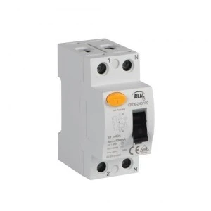 Wyłącznik różnicowo-prądowy, 2P, Długość [mm]: 75, Szerokość [mm]: 35, Wysokość [mm]: 81, Częstotliwość znamionowa [Hz]: 50, Kolor: biały, Liczba modułów: 2, Miejsce montażu: na szynę TH35, Napięcie znamionowe [V]: 230 AC, Prąd znamionowy [A]: 40, Prąd znamionowy różnicowy [mA]: 100, Stopień IP: 20, Typ zabezpieczenia różnicowoprądowego: AC, Zakres przekrojów stosowanych przewodów [mm2]: do 35, Zakres temperatury otoczenia, na którą może być narażony wyrób [°C]: -25÷40, Znamionowe napięcie izolacji Ui [V]: 400, Norma: PN-EN 61008-1, Zastosowanie: 2.