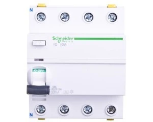 Wyłącznik różnicowoprądowy iID-100-4-30-A 100A 4-biegunowy 30mA typ A ,o numerze A9Z21491 Podwójne zaciski - możliwość bezpośredniego podłączenia dwóch przewodów o różnych przekrojach. Optyczny wskaźnik Visi-Trip wyzwolenia elektrycznego, biało-czerwony. Możliwość demontażu pojedynczego aparatu bez potrzeby zdejmowania szyny łączeniowej. Zdjemowanie z szyny DIN bez użycia narzędzi. Możliwość sprawdzania poprawności działania przyciskiem kontrolnym "T" jedynie raz do roku, przez pierwsze 7 lat użytkowania. Tor N umieszony po lewej stronie, ułatwia oszynowanie z wyłącznikami nadprądowymi.