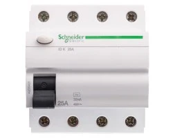 Wyłącznik różnicowoprądowy marki SCHNEIDER ELECTRIC to wysokiej klasy aparat czterobiegunowy. Został przystosowany do pracy przy zmiennym napięciu sterowania, które przy częstotliwości 50 Hz i 60 Hz wynosi od 400 V do 415 V. Znamionowy prąd w tym przypadku sięga 25 A. Znamionowy prąd różnicowy to 0,03 A. Znamionowa zdolność zwarciowa jest równa 0,5 kA. Stopień ochrony IP20 informuje użytkownika tego modelu wyłącznika różnicowoprądowego o niskiej odporności na wpływ wody, kurzu i pyłu, dlatego należy stosować to urządzenie jedynie w pomieszczeniach. Powyższa wersja wyłącznika jest przeznaczona do montażu na szynie DIN. Głębokość wbudowania sięga 69,5 mm. Szerokość została określona liczbą ośmiu modułów, w jakie wyposażono urządzenie. Wyłączniki tego typu znaleźć można w asortymencie kolekcji ACTI9, która zawiera również wyłącznik nadprądowy, rozłącznik bezpieczeństwa oraz automat zmierzchowy. Firma SCHNEIDER ELECTRIC, która zajmuje się produkcją tego rodzaju sprzętu jest liderem w zarządzaniu energią elektryczną. Funkcjonuje od prawie 200 lat. Dzięki temu długoletniemu doświadczeniu producent zdążył poznać potrzeby swoich klientów i dostosować artykuły wytwarzane w swoich fabrykach do tych wymagań.