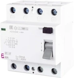 - Typ F - Wyłączniki typu F są wyłącznikami typu A o rozszerzonej zdolności detekcji prądów różnicowych. Wykrywają poprawnie składową stałą o wartości do 10 mA (typ A 6 mA). Dodatkowo mają zdolność detekcji prądu różnicowego odkształconego zawierającego wyższe harmoniczne.